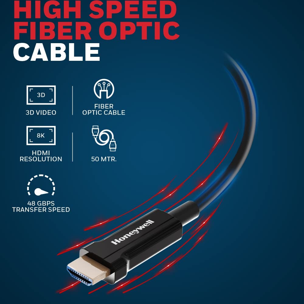 Honeywell HDMI AOC 2.1 Complaint 50 Meters, Transmission Speed of 48GBPS, Supports UHD Resolution of 8K@60Hz, Male-to-Male, High-Speed Fiber Optics Cable, Compatible with TV, Gaming Console, etc.