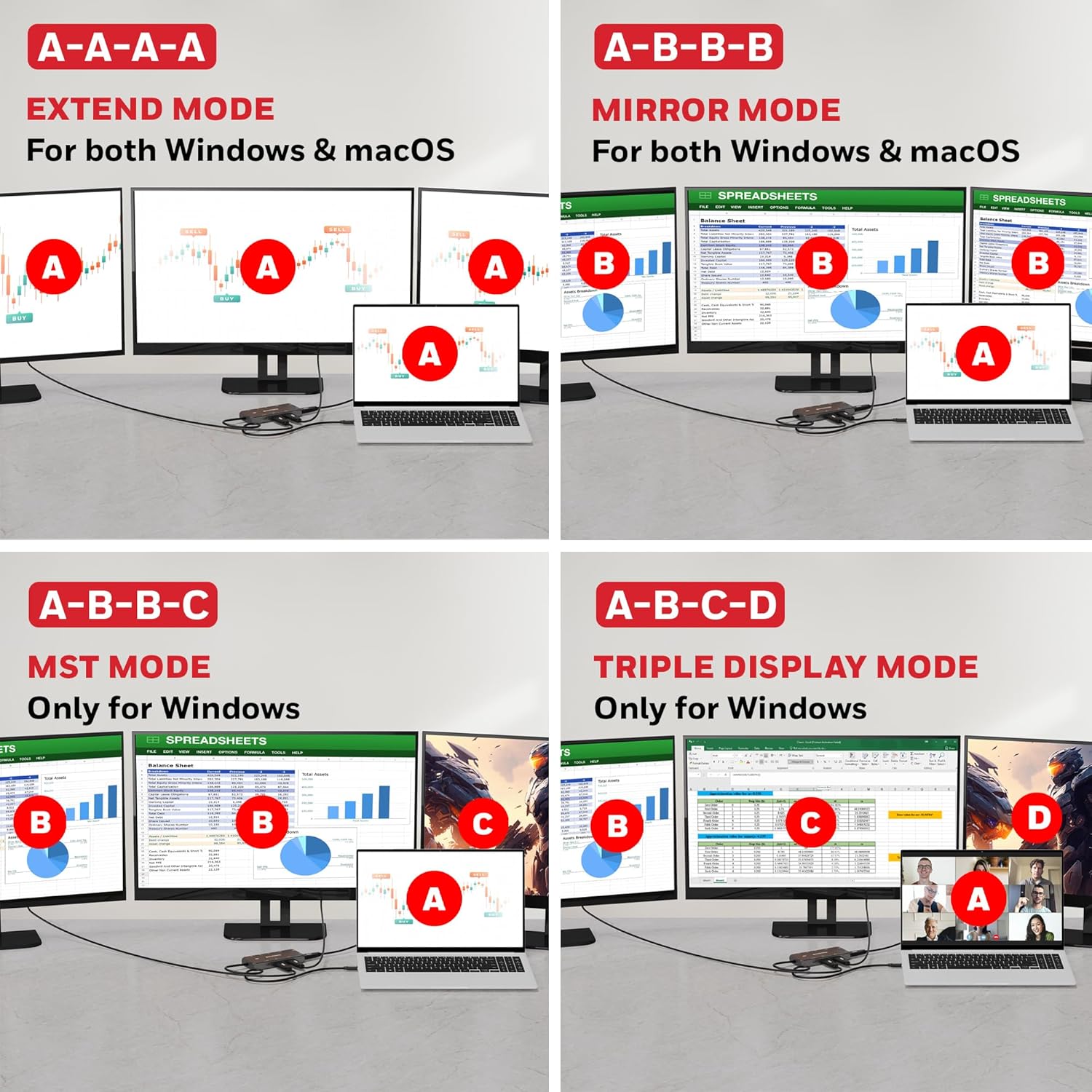 - Power Delivery & Card Slots – Type C PD 3.0 supports 100W output for ultra-fast charging; SD and Micro SD card slots enable high-speed file transfers for efficient data management.
